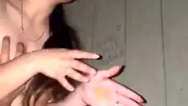 Young 1st year College girl pressing her boobs and getting ready for boobs job
